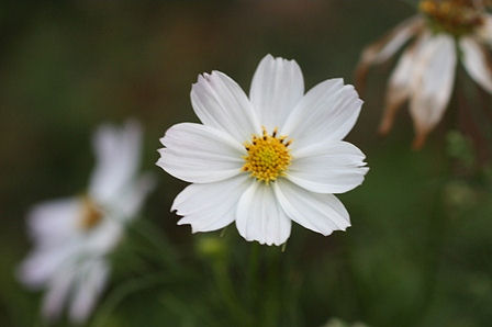 白いコスモスが咲いています。秋ですね。
