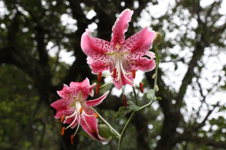 小雨のふる中、カノコユリがラストスパートです。