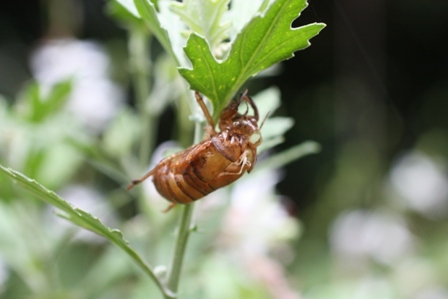 キクの葉にセミの抜け殻発見。