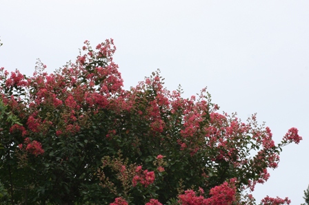 ピンクのサルスベリが夏の空に映えて…ない。