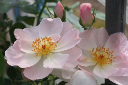 ここには写っていませんが、隣にはバラのアイスバーグが植えてあります。