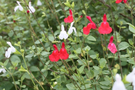 暑い時期には白い花を咲かせることの多いチェリーセージ‘ホットリップス'