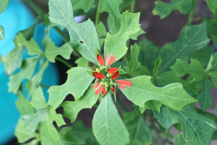 じょうろ置き場の脇で、こぼれダネから出てきたと思われるサマーポインセチアが1株。