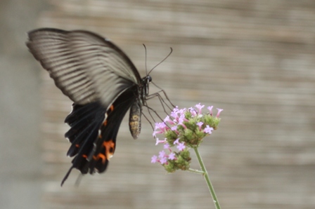 昼間のもっとも暑い時間でもアゲハチョウは元気です。