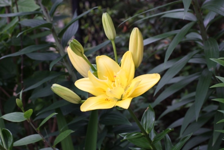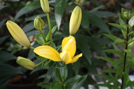 レモンイエローの八重咲きスカシユリ。(品種名忘れた。)