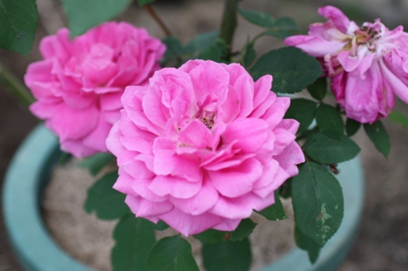 鉢植えのバラがバタバタ倒れてしまいました。
