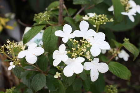 家族が花つきの四季咲きヤブデマリを買って来てくれました。